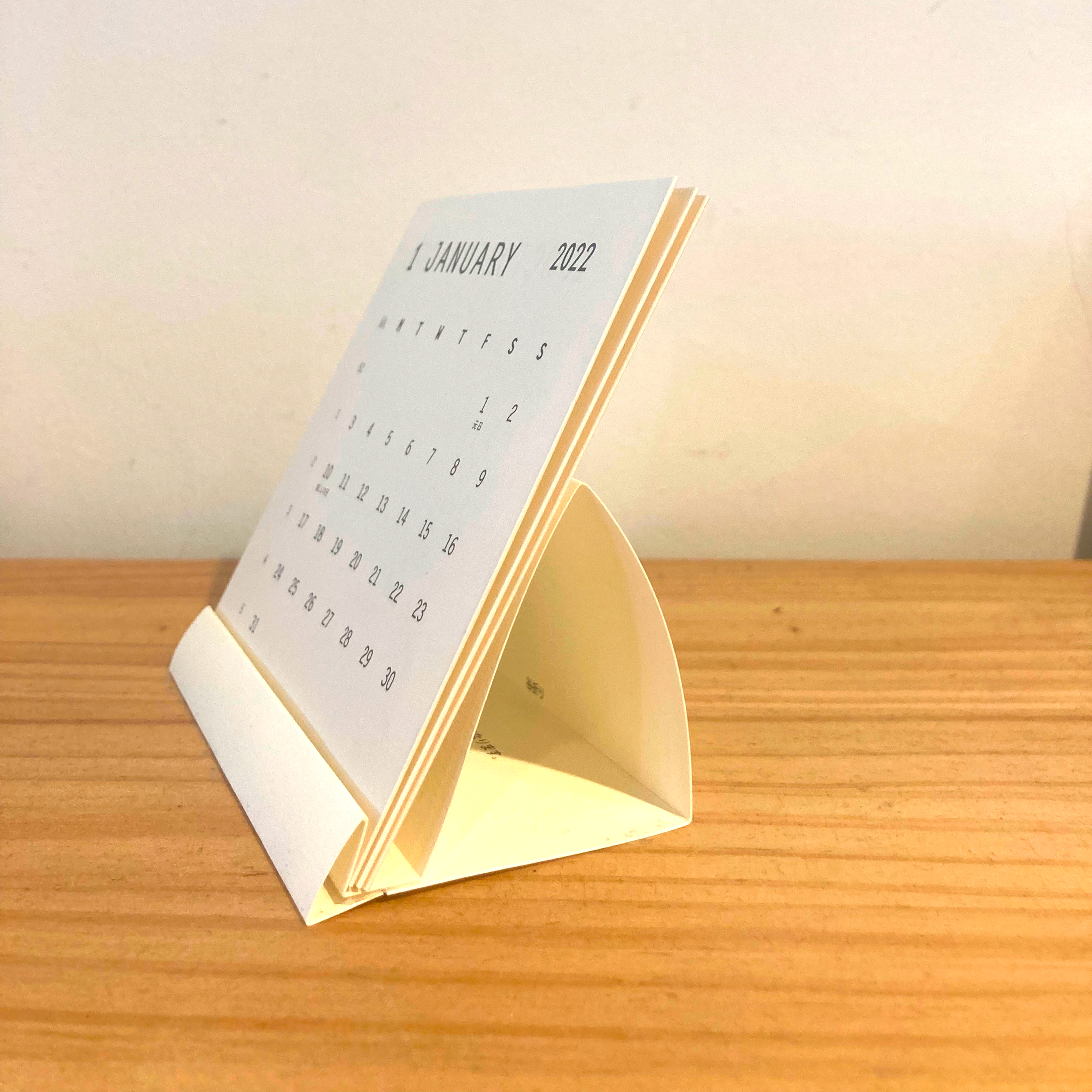 畳折り(たとう折り)することにより単月にも連月にも使用を変えられるジャバラ式カレンダーTATOUには、単月用の紙製のスタンドも付いています。